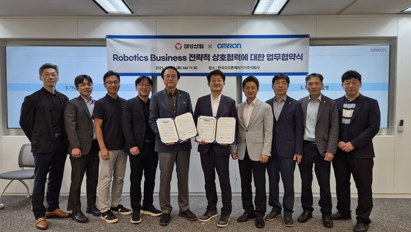 [에너지신문] 대성산업(주)(회장 김영대) 기계사업부는 글로벌 산업 자동화 솔루션 선도 기업인 ㈜한국오므론제어기기(대표 김영호)와 로보틱스 비즈니스 분야(Robotics Business)의 전략적 협약을 체결했다.